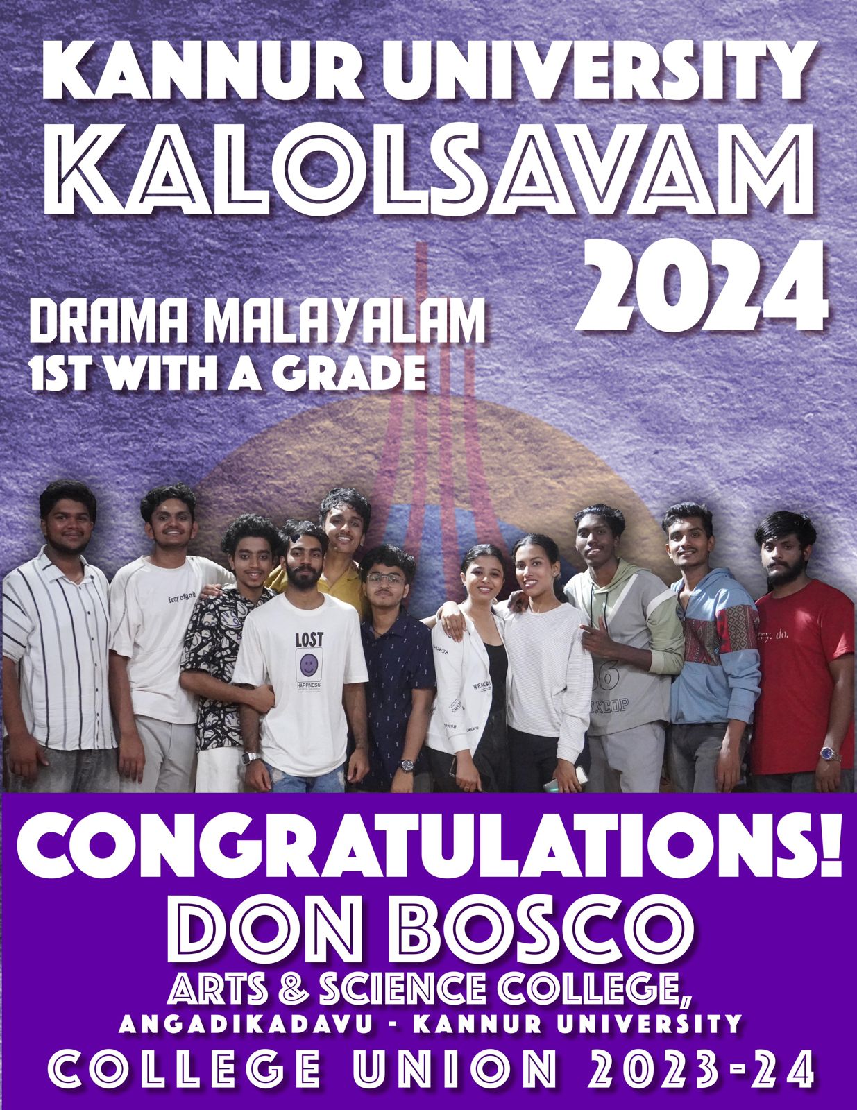 Don Bosco Arts & Science College secured Overall Championship (in the category of Education Institutes) in the Kannur District Yoga Championship organised by Kannur District Yoga Association